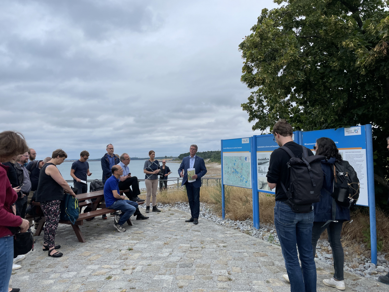 Dies wurde auch im Austausch mit Gerd Richter, Bereichsleiter Sanierungsbereich Lausitz bei der Lausitzer und Mitteldeutschen Bergbau-Verwaltungsgesellschaft mbH, deutlich. Er erläuterte hervorragend die Zusammenhänge vor Ort, insbesondere wie wichtig das Speichersystem Lohsa II im Sächsischen Teil der Lausitz ist. Mit 72 Millionen Kubikmetern Wasser in 3 Seen ist dies ein bedeutender Speicher zum Wasserausgleich unter anderem der Spree und damit dem Berliner Wasserhaushalt. Durch den fortschreitenden Klimawandel und den Ausstieg aus dem Kohleabbau in der Lausitz bis 2038, werden wir in naher Zukunft einem erheblichen Wassermangel im Spreeeinzugsgebiet gegenüberstehen.