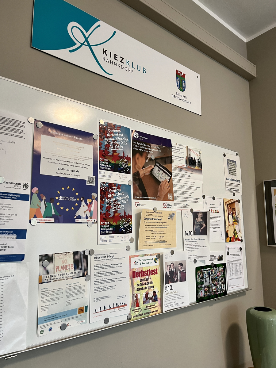 Zu meinem Besuch im Kiezklub Rahnsdorf begleitete mich unser Bezirksbürgermeister Oliver Igel. Die Leiterin Frau Juse zeigte uns die vielen liebevoll gestalteten Räume in dem Gebäude an der Fürstenwalder Allee. Das Zielpublikum ist zwar 55+, aber es sind alle Altersgruppen immer herzlich willkommen. Ob Lesecafé, Keramikwerkstatt, Reparier-Café, Bauchtanz oder Außenstelle der Joseph-Schmidt-Musikschule, hier gibt es viele Möglichkeiten zur Freizeitgestaltung. Hier wird das ehrenamtliche Engagement groß geschrieben. Freiwillige leiten selbst Kurse oder organisieren Musikveranstaltungen und kümmern sich um ein tolles gelebtes Miteinander. Schön, dass es diesen Ort für alle in Rahnsdorf gibt.