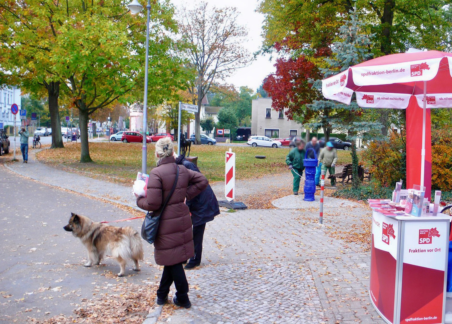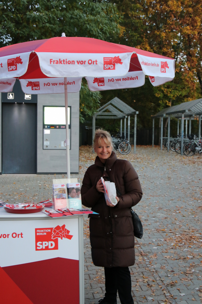 Beim Infostand am S-Bahnhof Wilhelmshagen gab es für Interessierte Informationsmaterial der SPD-Fraktion des Berliner Abgeordnetenhauses und einen kleinen Morgengruß von mir – Vitamine pur: „One apple a day keeps the doctor away!“ Der Austausch mit den Menschen auf der Straße gibt mir wichtige Einblicke in ihren Alltag, unter anderem über ihre Anbindung durch den Öffentlichen Nahverkehr von und nach Wilhelmshagen. Der Anblick des Bahnhofsgebäudes ist nach wie vor schwer zu ertragen. Hier muss die Deutsche Bahn endlich loslegen und die Baustelle zu Ende führen. Positiv: Die öffentliche Toilette an dem Standort war sauber und kostenlos zugänglich. An dem Morgen konnte ich außerdem mit Mitarbeiter*innen der BSR sprechen. Ich bedankte mich für ihre Arbeit, denn schließlich räumen sie den Dreck anderer weg. Sie konnten bestätigen, dass die „Egal-Einstellung“ der Menschen zunimmt. Gleichgültig wird immer mehr Müll neben die Tonnen, anstatt hinein geworfen. Das frustriert sicher auf Dauer die Mitarbeiter*innen der BSR. Was können wir alle gemeinsam dagegen tun? Ein Thema, dass mich als Mitglied des Ausschusses für Umwelt, Klima- und Verbraucherschutz sehr beschäftigt. Gut, dass wir in der Koalition z.B. 2 Millionen Euro mehr für die BSR zur Parkreinigung ermöglichen konnten.